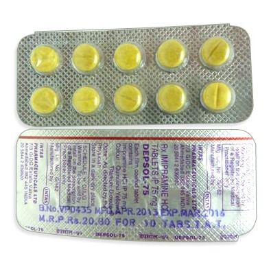 - De gebruikelijke dosis imipramine is 75–150 mg per dag, afhankelijk van de ernst van de symptomen.