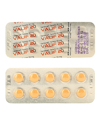- Valif wordt gebruikt voor de behandeling van erectiestoornissen (ED). Het werkt als een selectieve remmer van fosfodiësterase type 5 (PDE5), die de vasodilatatie verhoogt in de penis door de werking van stikstofoxide te verbeteren, wat alleen effectief is in aanwezigheid van seksuele stimulatie.